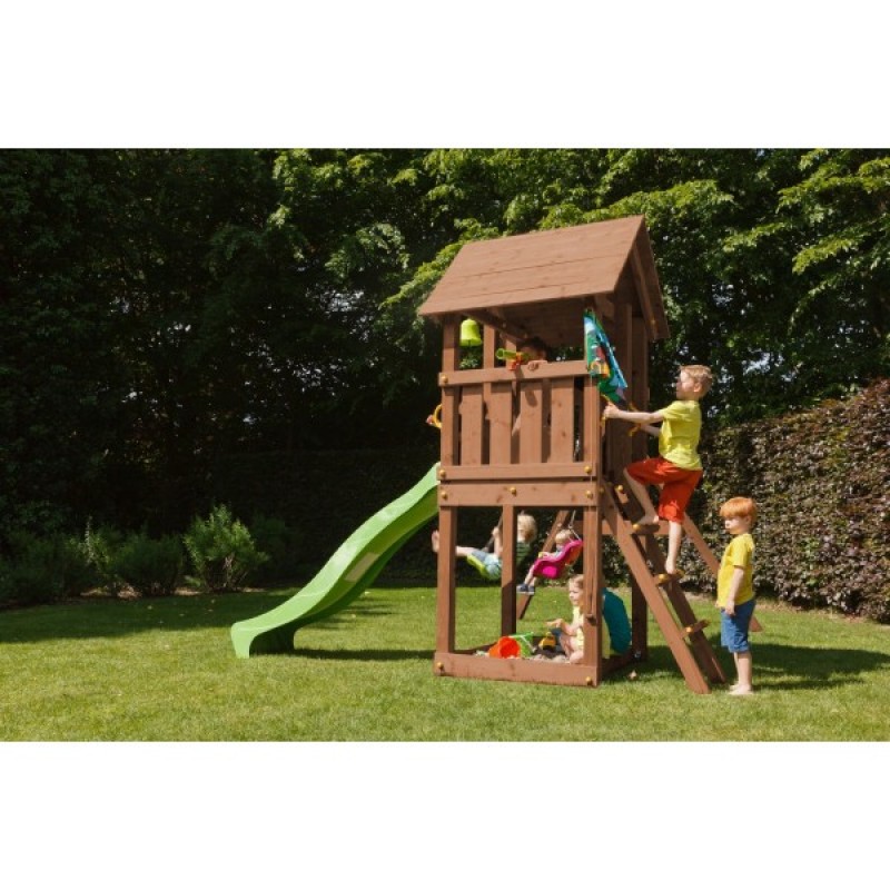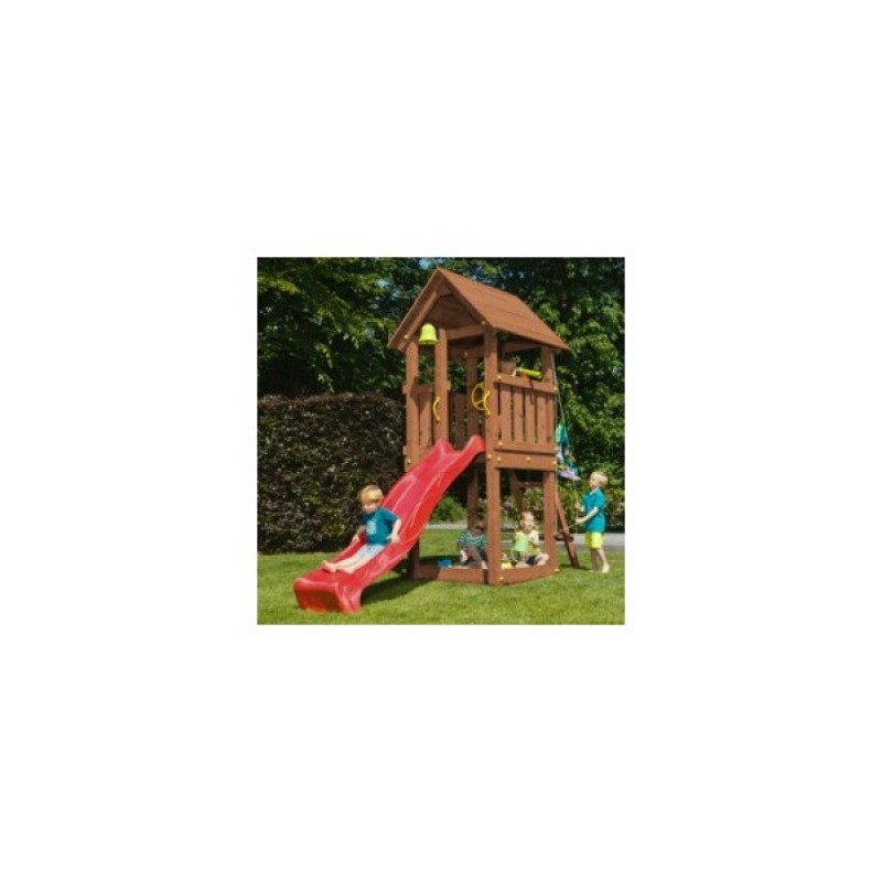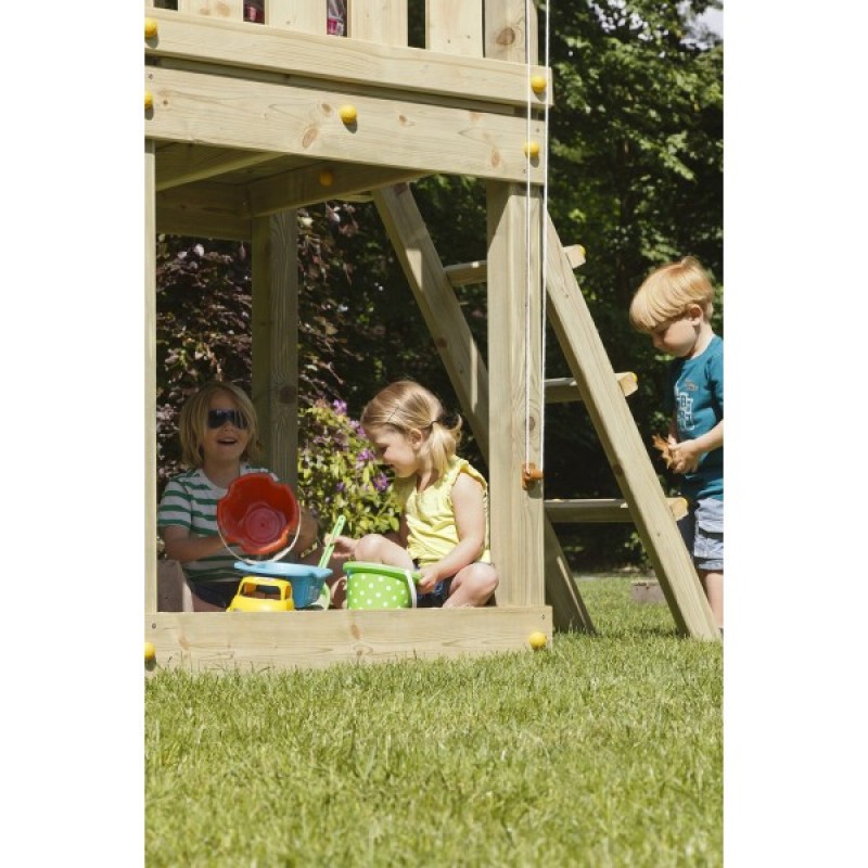 Turnul de joaca este usor accesibil, iar cele doua platforme de legatura si rampa de intrare inclinata ofera o distractie de tip alpinism chiar si copiilor cu varste fragede.
